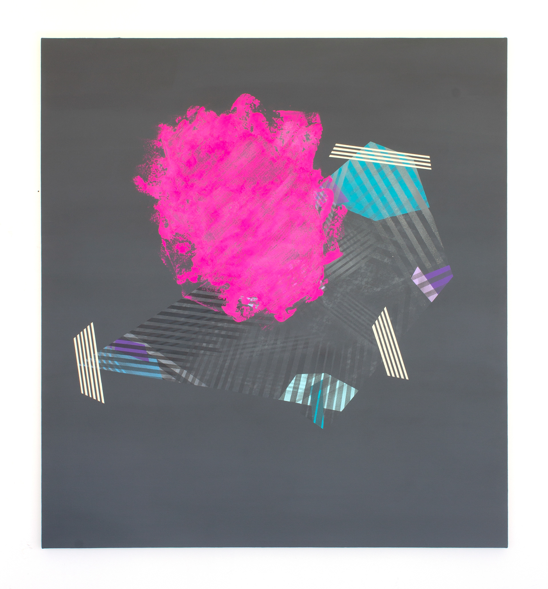 Just A Little Emotional. 2013. Acrylic, spray paint, canvas, wood. 57 x 62 inches (144.78 x 157.48 cm).