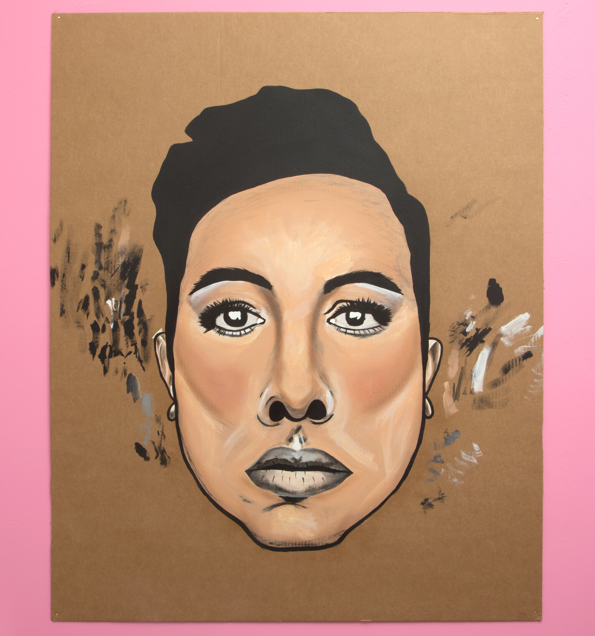 Brown On Brown 1. 2017. Acrylic, make-up, glitter, graphite, cardboard. 48 x 60 inches (121.92 x 152.4 cm).